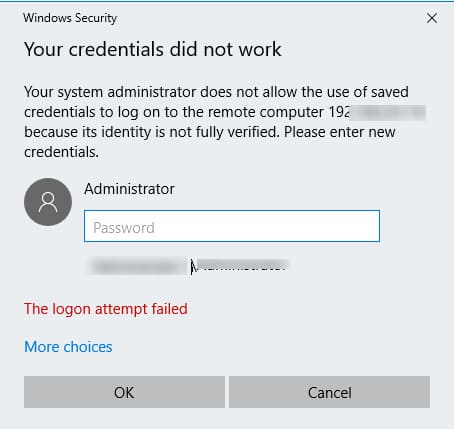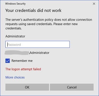 Windows Security: Your credentials did not work
