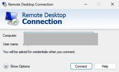 1. In the RDP settings, ensure the Always ask for credentials option is not selected.