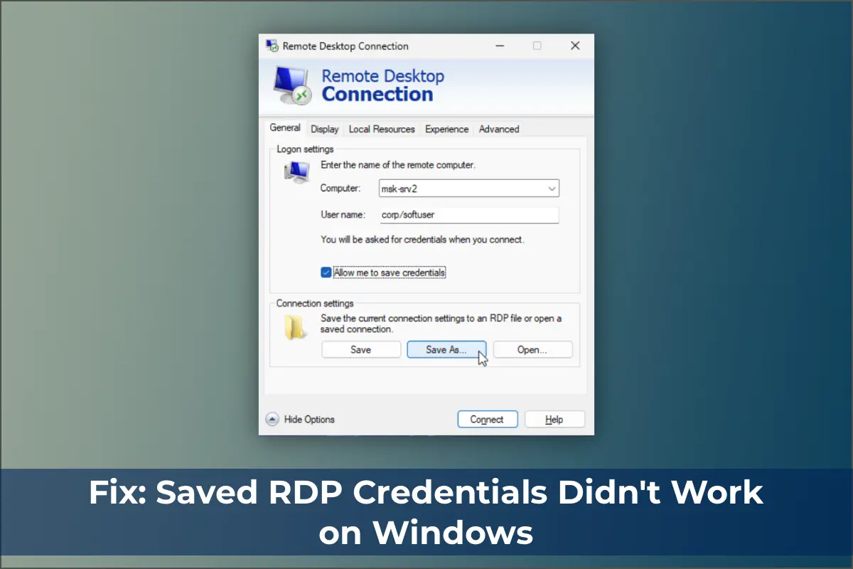 This article explains how to configure Windows to save passwords for RDP connections and troubleshoot issues when passwords are not saved, requiring re-entry each time.