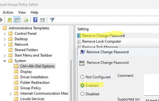 After this, users will not be able to change their passwords through the password change dialog in Windows.