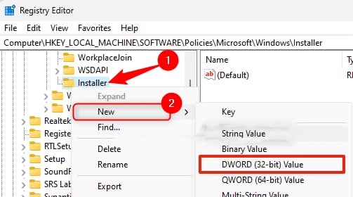 HKEY_LOCAL_MACHINE\SOFTWARE\Policies\Microsoft\Windows\Installer